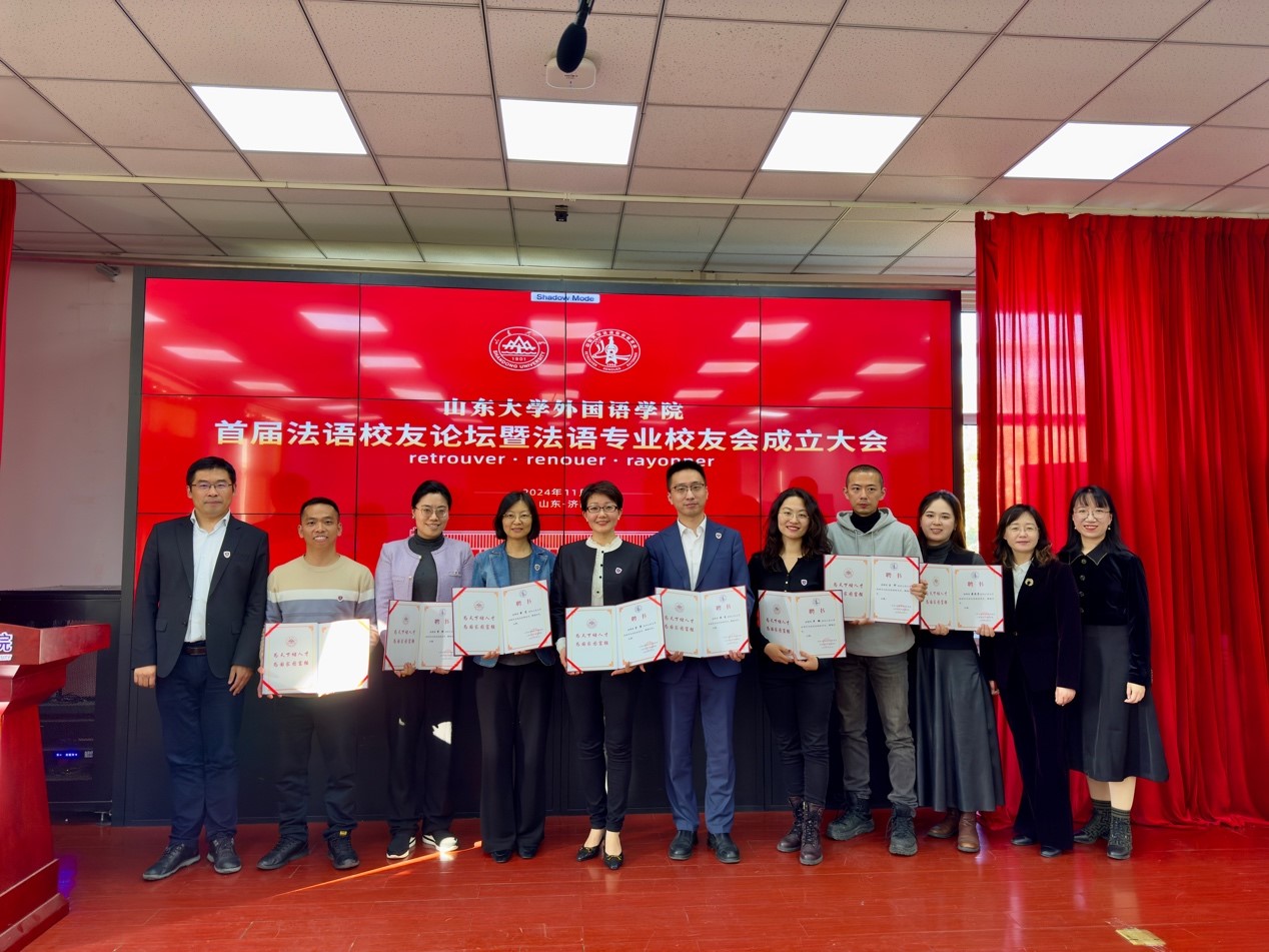 首届校友会会长、1995级校友宫黎在致辞中,深情回顾了自己在法语专业的学习时光,并表达了对母校的无尽敬意。她表示,她将与所有校友一道,努力将校友会打造成一个充满温情与凝聚力的大家庭。校友会秘书长、2007级校友黄龙表示,他将与各地校友携手合作,建立校友信息库,为在校学生提供就业机会,举办各类活动增进校友情谊,使校友会成为法语系发展的坚强后盾。曾任教于山大法语系的曹冬雪老师,以及2007级校友栾翘楚作为校友代表先后发言,回顾了山大度过的美好时光,并表示欣喜地看到法语系近年来取得的突飞猛进的发展。