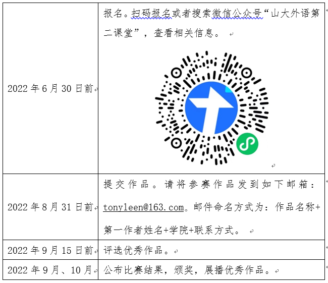 特别说明:颁奖等线下活动根据疫情防控情况组织安排,具体时间、地点另行通知。请关注信公众号“山大外语第二课堂”或大学外语教学部网站上的相关信息。