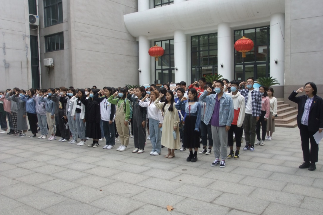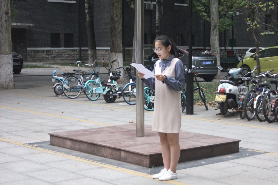 10月1日上午,威廉希尔中文官方网站在洪家楼校区举行升旗仪式。2020级辅导员张明明、林佳慧出席了此次仪式,2020级本科生团员代表参加了本次仪式。本次活动旨在弘扬爱国抗疫精神,集中展现当代青年为实现伟大复兴而建功立业、争做时代先锋的爱国主义情怀和昂扬的精神风貌。