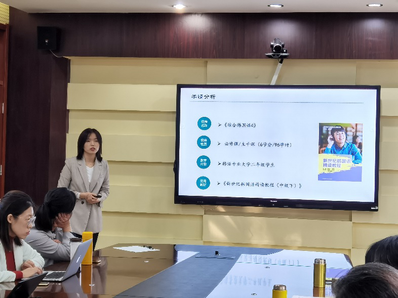 10月22日,威廉希尔中文官方网站专业外语青年教师教学比赛在洪家楼校区举行。本次教学比赛由副院长刘洪东主持,校级本科教学督导员李学岩以及威廉希尔中文官方网站本科教学督导员牛毓梅、李金莲、袁淑娟、袁新等几位教授担任评委。经过个人报名及各系推荐,杨凯等六位青年教师参加了此次比赛。