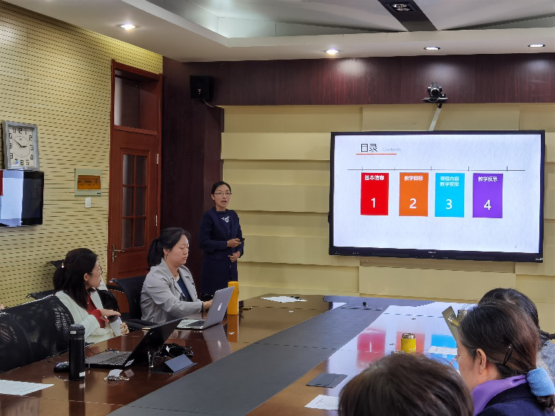 比赛采取说课的形式,时间为15分钟。各位参赛教师分别从课程的基本信息(课程性质、学分学时、学生对象、使用教材等)、教学目标、课程内容与教学安排(教学步骤、师生互动环节设计、课件形式和技术手段、预习任务与课后作业等)、以及教学反思四个方面展开教学。