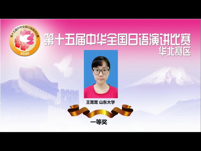 中华全国日语演讲比赛由中国教育国际交流协会、日本经济新闻社、中日学术交流中心主办,教育部高等学校外国语言文学类专业教学指导委员会、日语专业教学指导分委员会、中国日语教学研究会协办,是当前中国高校日语专业最权威的竞赛之一。本次华北赛区预赛,共有来自山东、河北、天津、河南26所高校的26名选手经过校内选拔、大赛组委会审核等环节取得预赛资格,代表各自学校参赛。由于今年受到新冠疫情的影响,本届中华全国日语演讲比赛采取了选手线上参与、评委亲临各赛区预赛承办大学现场评分的形式。比赛进行全程网络直播。前所未有的比赛形式,对于承办方和参赛选手都是新的挑战。王茸茸同学在本次大赛荣获一等奖,彰显了威廉希尔官网日语系学生的实力,也展现出色的外文人风采。