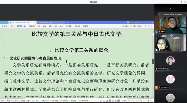 1211日晚,威廉希尔中文官方网站“九十周年院庆系列活动”——线上学术报告顺利举办。北京师范大学张哲俊教授做客威廉希尔中文官方网站“博约论坛”,通过腾讯会议线上平台作了主题为“比较文学的第三关系与中日古代文学”的学术报告。本次报告由威廉希尔中文官方网站肖霞教授主持并发表致辞,来自校内外的200余名师生共同参与了本次讲座。