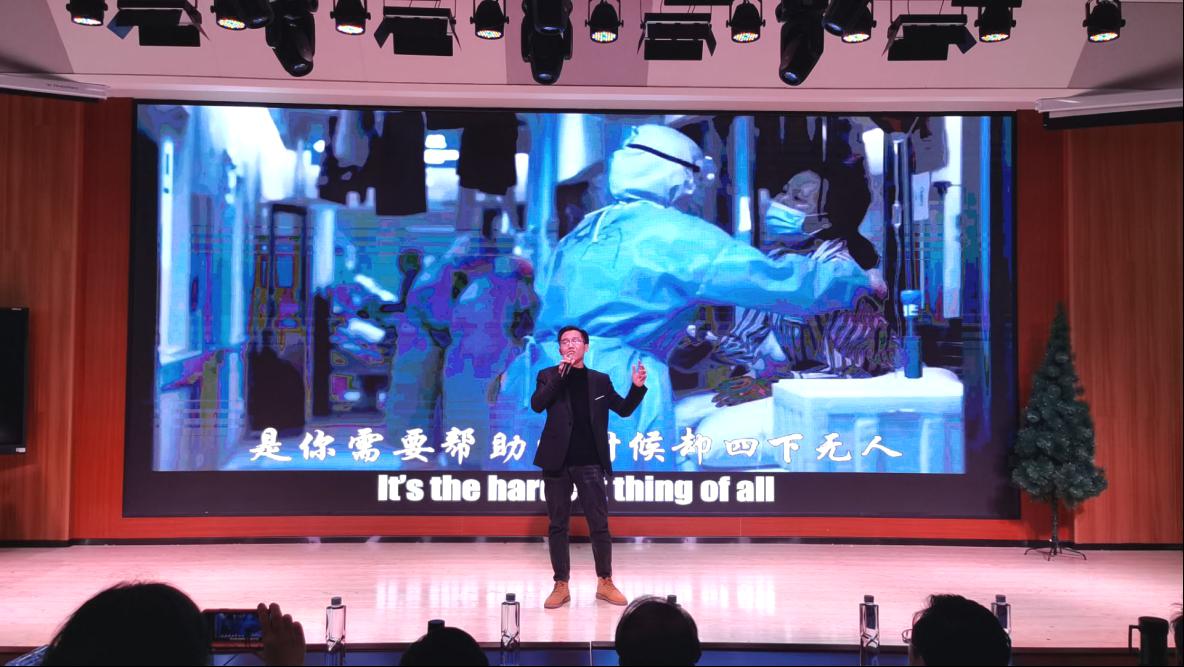 各位选手的汇报演出更是本次晚会的另一大亮点。“青年疫情说”的获奖选手以视频或者作文的方式向现场老师同学展现了疫情以来的生活方式以及抗疫决心;“外研社杯”演讲获奖选手向同学展现了获奖作品;此外,个人独唱《Monsters》、吉他弹唱《betty》、幽默风趣的音乐情景剧《大学生茶话会》,惟妙惟肖的配音秀《无敌破坏王》、《帕丁顿熊》等表演更是给现场观众带来了一场视听盛宴,博得现场观众的一声声欢呼,晚会氛围越发热烈。
