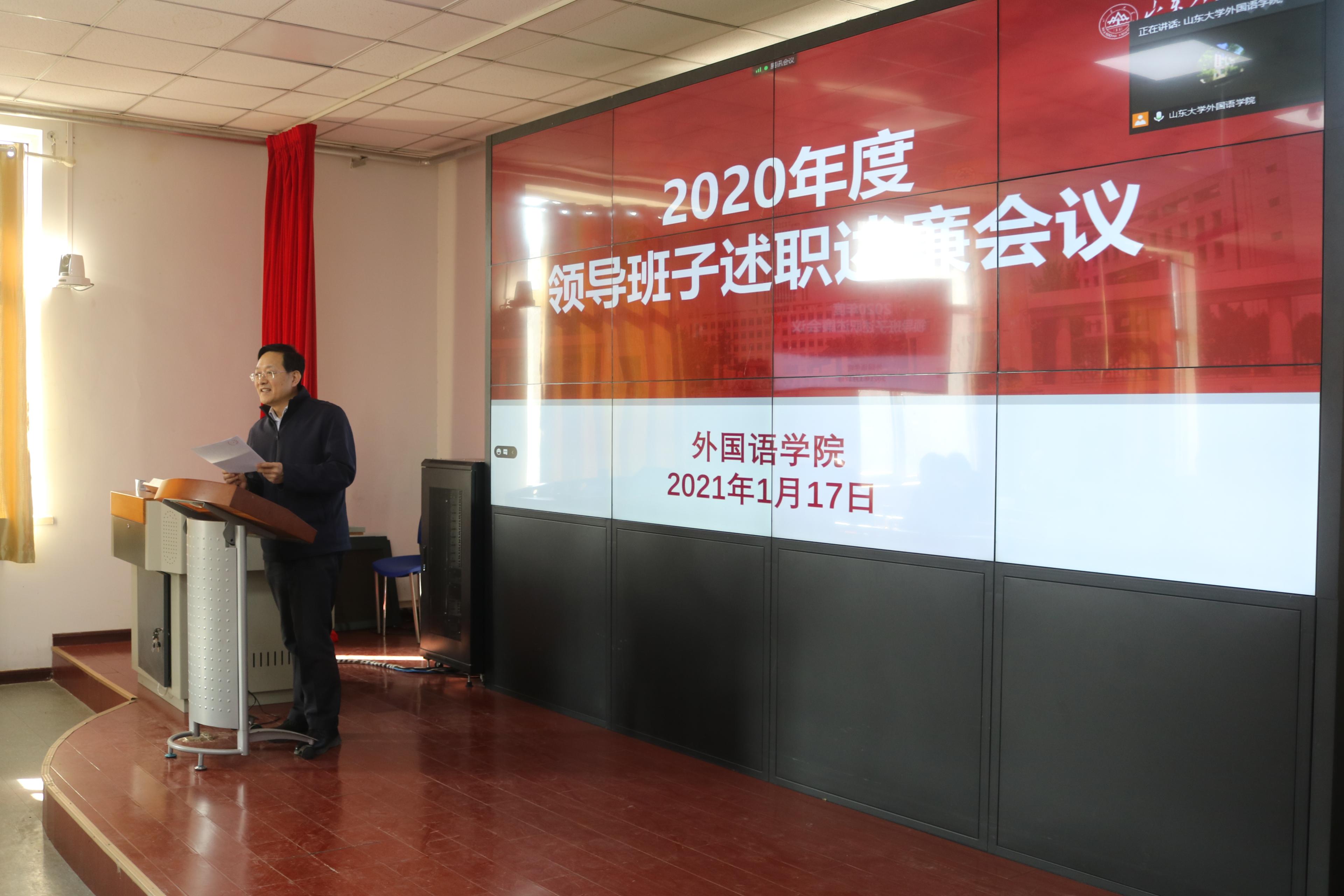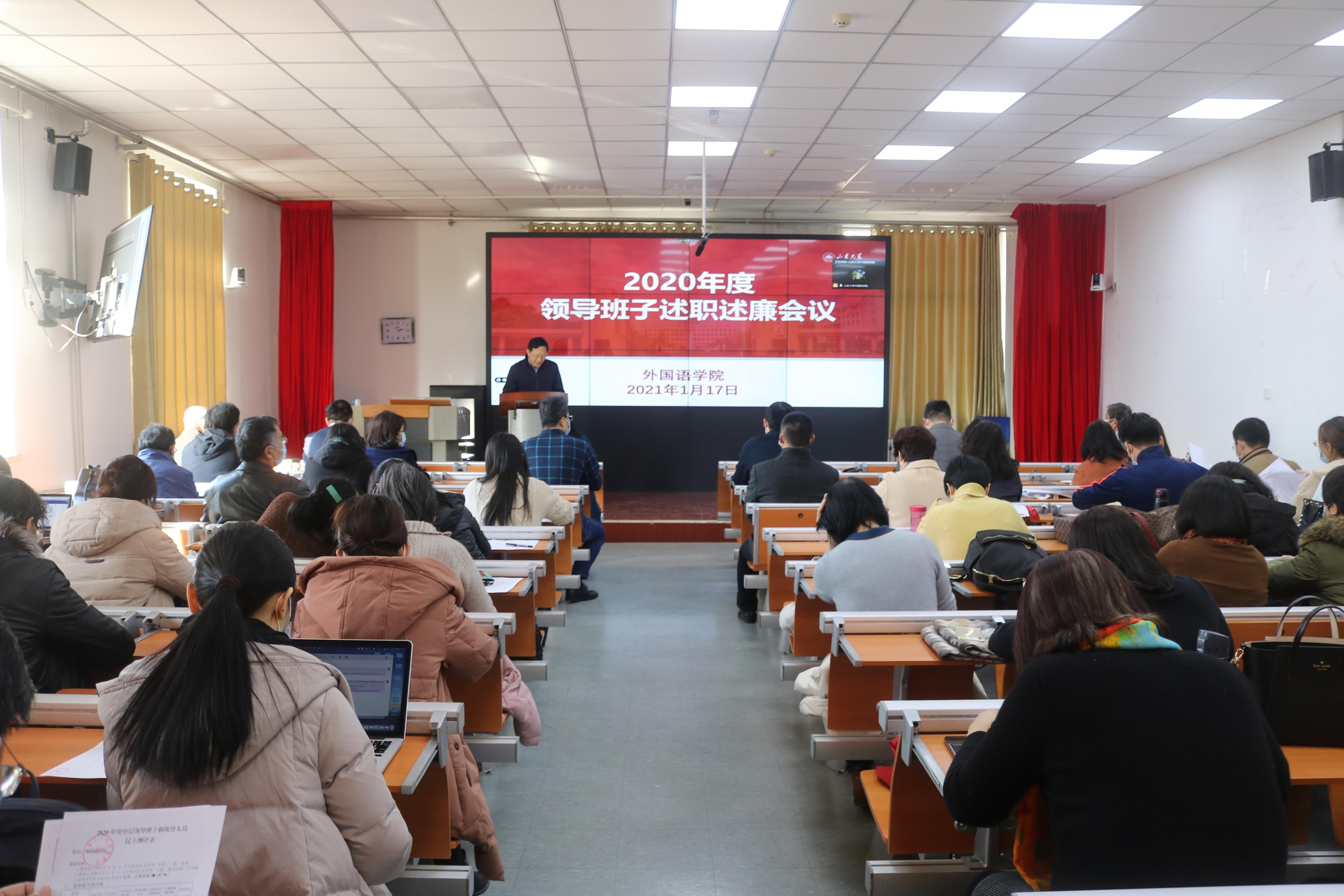 2021年1月17日下午,威廉希尔中文官方网站举行2020年度领导班子和领导人员述职述廉会议。会议由党委常务副书记薛佩军主持,学院领导班子成员及教职工代表参加了会议。