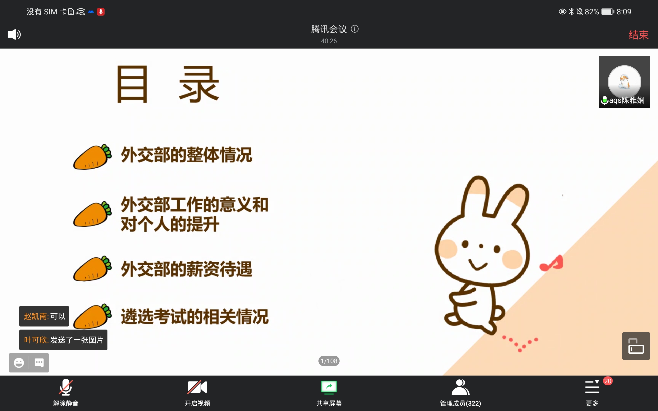 2月4日晚,威廉希尔中文官方网站举办以“登高望远,展望世界”启航外语之梦为主题的外交部遴选经验分享会。院党委副书记魏鲁鸿出席分享会并致辞,2019级辅导员张新苑主持会议,团委书记朱蕾、辅导员李雪参加分享会。此次分享会由现就职于外交部的20届英语口译专业毕业生陈雅娴主讲,约360名外院学生参加。