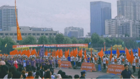 在运动会开幕式上,教工方队成员身着统一的紫色院庆服装,精神饱满,朝气蓬勃,在学院党委常务副书记薛佩军的带领下,斗志昂扬地通过主席台。