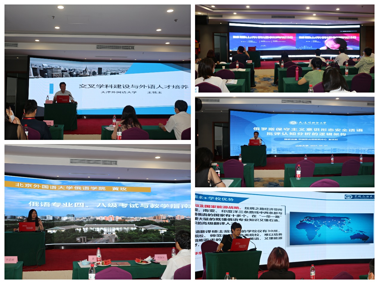 在随后的主旨发言环节,王铭玉教授以“交叉学科建设和外语人才培养”为题,深入探讨了交叉学科的概念、特点及外语人才的十大发展取向;教育部高等学校外国语言文学类专业教学指导委员会俄语分委员会副主任委员、上海外国语大学俄罗斯东欧中亚学院院长许宏教授以学院课程思政改革为例,重点考察了专业课程思政实施途径及思政元素挖掘策略。教育部高等学校外国语言文学类专业教学指导委员会俄语分委员会副主任委员、北京外国语大学俄语学院党支部书记黄玫教授结合《普通高等学校本科外国语言文学类专业教学指南》中对人才培养的目标和要求解读了大学本科阶段俄语专业学生应具备的基础能力,详细介绍了近年来专业俄语四、八级测试的基本情况。彭文钊教授为与会者分享了新文科背景下,大连外国语大学国际政治语言学概念与特点及未来发展方向。中国石油大学(华东)威廉希尔中文官方网站副院长孙大满教授以中国石油大学(华东)俄语翻译硕士研究生人才培养为例,探讨了“一带一路”视域下能源特色型高素质俄语翻译硕士培养模式的改革路径。论坛主题鲜明,议程紧凑,内容充实,气氛热烈。