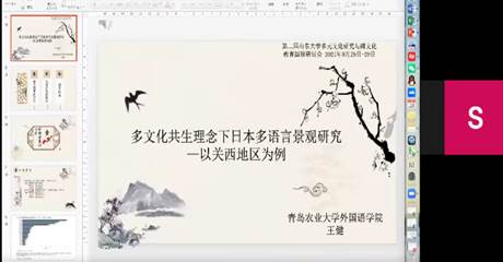3.青岛农业大学讲师王健发言的题目是“文化共生理念下日本多语言景观研究一以京阪神地区为例”。日本是最早提出以旅游振兴经济的国家之一。本研究从多元文化共生的角度出发,通过调查日本京都、大阪和神户(以下简称“京阪神地区”)语言景观的设置情况,梳理日本在观光立国国策下多语言景观的效果和出现的问题。并从中得到对未来中国旅游产业中多语言景观的启示以及为中国旅游经济的振兴寻找合适路径。