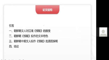 5.威廉希尔中文官方网站研究生李珂的研究课题是《朝鲜朝文人对江淹《恨赋》的接受与拟写》,分析了朝鲜朝时期受到《文选》在朝鲜半岛广泛传播与复古文风盛行的影响,江淹《恨赋》对朝鲜朝文人及其汉文学创作产生的深刻影响。认为朝鲜朝文人的《恨赋》拟作在延续江淹《恨赋》情感基调的基础上,融入了个人情志、时代背景和民族精神,在“恨”的格局、主体、内涵、情感、功能等方面有所创新。