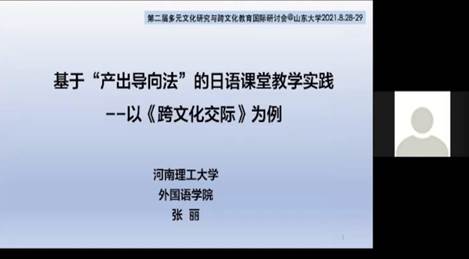 4.河南理工大学讲师张丽的研究课题是《基于“产出导向法”的日语《跨文化交际》课堂教学实践》。张丽的研究将“产出导向法”应用于日语《跨文化交际》课程,围绕“驱动、促成、评价”三个环节进行了6个学时的教学设计并进行教学实践,以探索日语课堂应用该教学法的可能性以及教学法在提高学生产出能力、改善学生学习态度方面的效果。