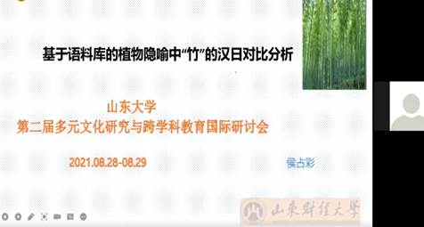1.山东财经大学讲师侯占彩以“基于语料库的植物隐喻中‘竹’的汉日对比分析”为题,介绍“竹”不仅同中日两民族的日常生活息息相关,而且渗透到各个领域,其相关的语言与文化研究也一直备受国内外学者关注。基于NLB和CCL语料库,运用语料库和对比研究方法、隐喻理论对汉日语中“竹”的隐喻表达方式进行对比分析。这对跨语言文化研究与教学都具有一定的启发意义。