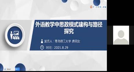 2.青岛理工大学副教授唐画女研究的题目是《外语教学中思政模式构建与路径探究》。当前,高校正在大力推动“课程思政”改革,努力实现思政教育与知识体系教育的有机统一。唐画女认为,古今中外,众多教育家都阐述过“教学”与“育人”的相互关系,“课程思政”是这一逻辑在历史时期中的发展,教师要坚持马克思主义世界观和方法论,回答好“培养什么人、怎样培养人、为谁培养人”的首要问题。