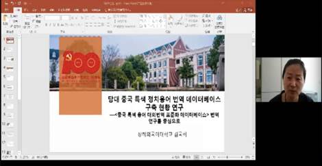 4.上海外国语大学副教授金菊花做了题为《当代中国特色政治话语翻译术语库的建构及现状研究——以中国特色话语对外翻译标准化术语韩译为例》的研究报告。翻译术语库是时代发展的产物,也是中国文化走出去的必然,在促进翻译、有效推动术语标准化和国际传播方面发挥着重要作用。金教授基于数据库的应用特点,分析首个国家级多语种权威专业术语库的建设现状,以期优化术语库的知识服务功能,更好地服务国家话语体系建设和中国文化对外交流。