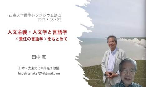 1.日本大东文化大学荣誉教授田中宽做了题为《人文主义、人文学与语言学》的演讲。演讲阐释了在多元文化研究和跨学科教育的框架内,语言学研究和教育意味着什么?田中教授将自己的历史经验作为一个案例研究,说明语言研究的目的是什么,以及它如何在时代的一个重大转折点上回归教育。特别是对于年轻一代,田中教授从文学和历史的跨学科兴趣出发,明确了“负责任的语言学”的三个立场,即经验语言学、艺术语言学和伦理语言学。