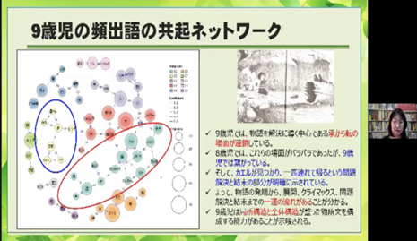 5.日本爱知教育大学特聘教授稻叶翠做了题为《儿童叙事文发展过程探索》的演讲。本研究是对第一语言叙事句的语篇结构发展过程的研究,探索儿童将采取哪些步骤来保持凝聚力并能够讲述一个有凝聚力的主题叙事。儿童创作故事的能力在三岁左右开始发展,据说在九岁左右达到高水平。此外,婴儿对故事的理解开始于三岁左右,从所有事件无法关联的阶段,到个别事件可以在语言上关联和整合的阶段。该研究总结了先行研究,并阐明母语为日语的孩子如何进行儿童叙事文的发展过程。