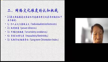 4.盛玉麒发表题为“网络多元文化认知挑战与适应性对策”的演讲,指出“文化适应”是二语习得领域的关键词,指不同文化背景对语言习得的心理影响。在物质和非物质文化的广袤世界里,在传统文化与多元文化之间,在大众文化与小众文化、粉丝文化、闺蜜文化、群文化等“亚文化”之间,如何处置文化差异、如何定位文化角色、如何认知和理解文化差异、文化功能与文化体验,如何规避和协调文化冲突,是摆在当代每个社会成员面前的严峻挑战。秉持“和而不同”的跨文化沟通的语用原则,坚持“海纳百川”的尊重与包容的“理解万岁”精神境界,应该是首选的适应性对策。