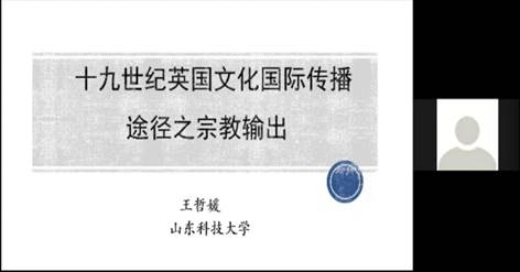 3.山东科技大学讲师王哲媛以《十九世纪英国文化国际传播途径之宗教输出》为题发言:在原始积累时期和自由资本主义时期,西方文化输出的推动者主要是基督教会,因而整个西方文化对外传播的途径带有颇为浓厚的宗教色彩,19世纪的英国便承担了这一责任和使命。王哲媛认为,宗教成为文化国际传播的一种必要途径,传播宗教教义,辅之以人文和科学知识传授的循序渐进的传播方式,成为国际传播中的一股特殊实力,为英国文化的对外传播起到了至关重要的作用。