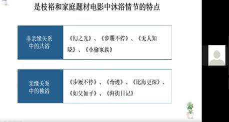 5.青岛农业大学教师王淑一在题为“浅析是枝裕和家底题材电影中的沐浴情节”发言中,指出与传统意义上的家庭不同,是枝裕和镜头下的家庭大多不以血缘关系为基础,甚至《小偷家族》中的一家六人之间毫无血缘关系。其电影中刻意弱化血缘在家庭关系中的重要性。沐浴情节在是枝裕和的家庭题材电影中承担了非常重要的功能。我们可以在是枝裕和的电影中寻到日本沐浴文化的踪迹。