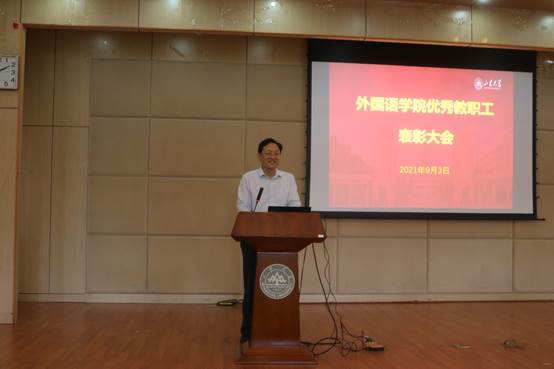 9月3日下午,威廉希尔中文官方网站召开新学期全院教职工大会,会议分两个阶段进行。第一阶段,对学院2020年度优秀教职工进行表彰。第二阶段,会议传达学校精神,全面部署学院新学期工作。会议分别由常务副书记薛佩军和组织员周俊基主持。