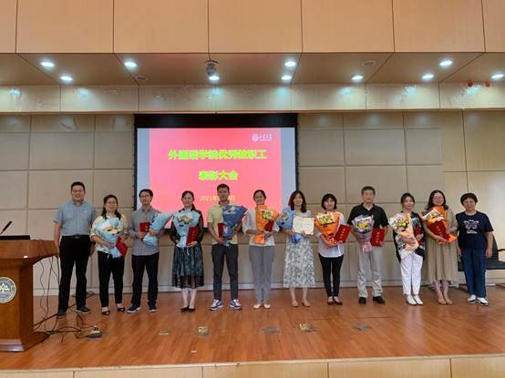 正处级辅导员曾志英、副书记魏鲁鸿为2020年度威廉希尔中文官方网站10位“优秀班主任”颁奖。