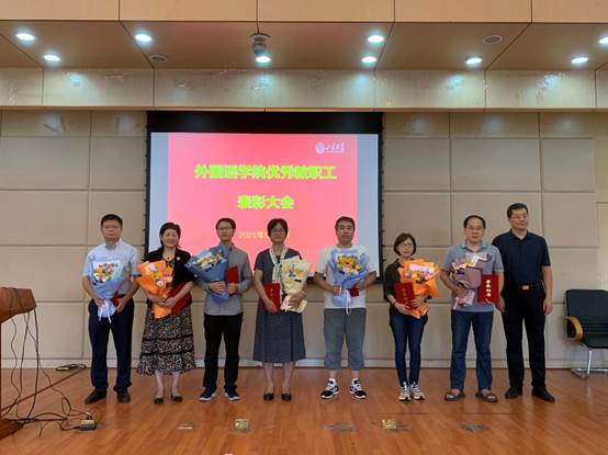 副院长崔校平、刘洪东为2020年度威廉希尔中文官方网站20位“优秀教师”颁奖。