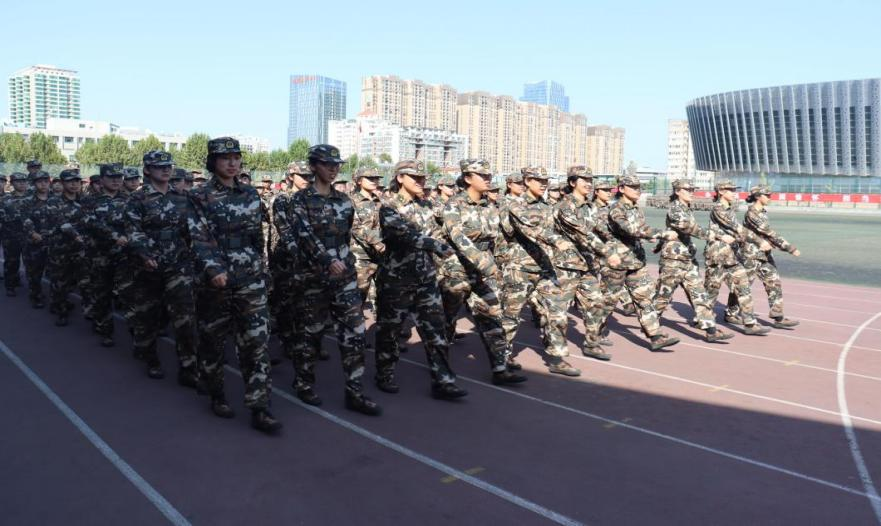阅兵仪式上,外院连队步伐整齐、口号响亮,充分展现出外院学子的良好精神风貌。