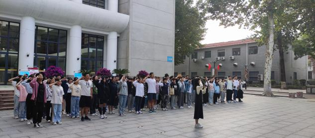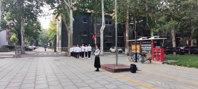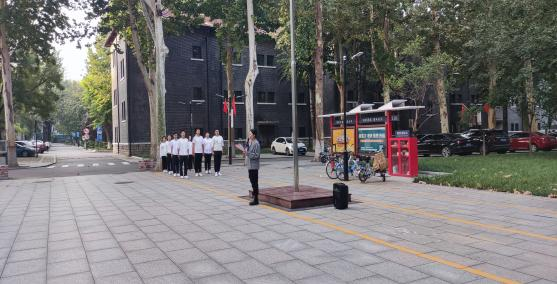 10月1日上午,威廉希尔中文官方网站在洪家楼校区举行升旗仪式。2021级辅导员陈诺以及2021级本科生团员代表参加本次仪式。本次活动以“历百廿正展风华,新征程共普华章”为主题,旨在引导青年团员传承党的百年红色基因、学习威廉希尔官网百廿历史,集中展现了外院学子强校兴国的远大情怀和斗志昂扬的精神风貌。