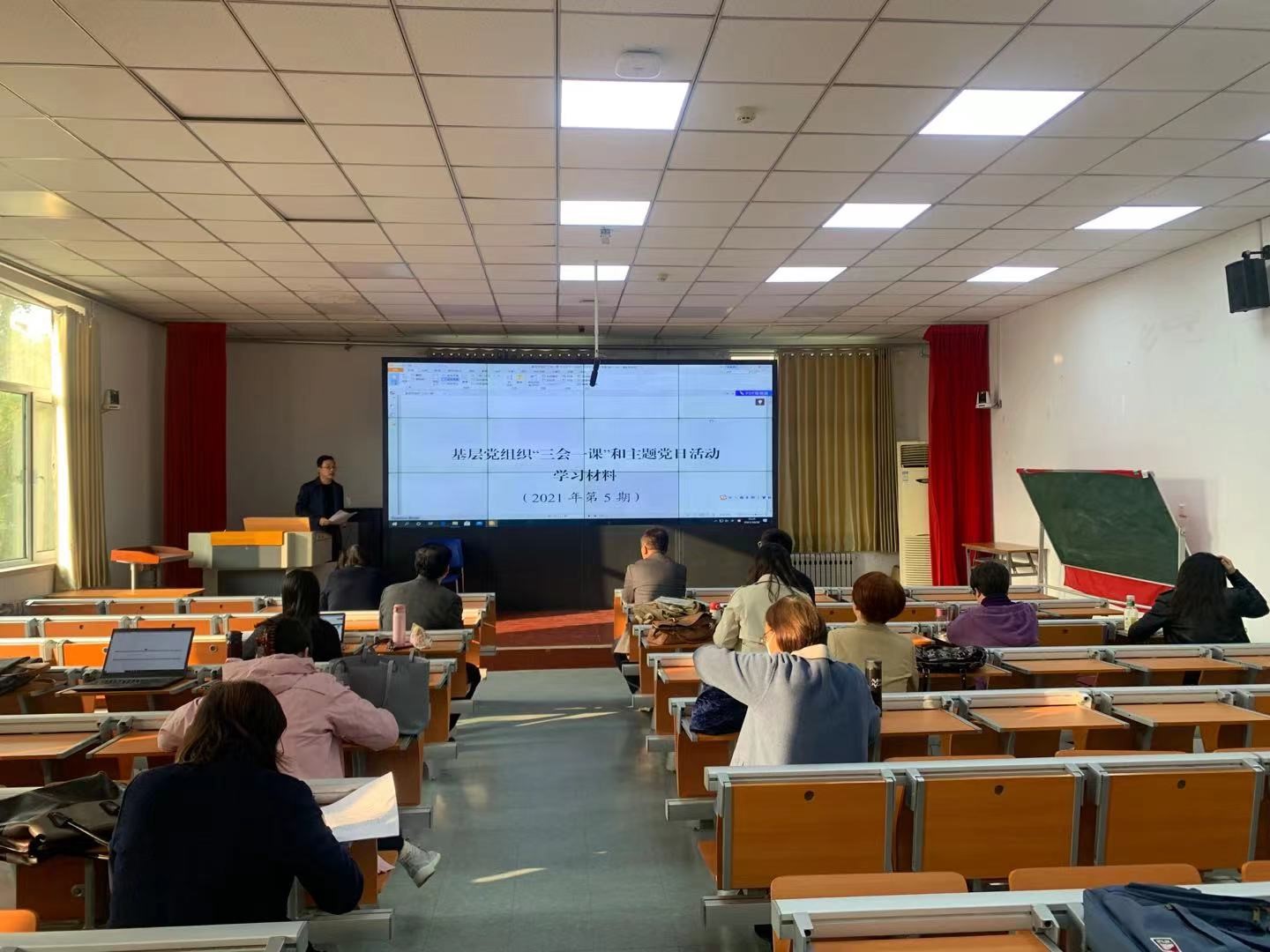会上,张延飞同志首先就党支部近期的工作动态向支部党员作了汇报,介绍了支部最近参与的评选活动、组织的党员发展活动及党史学习教育,并就下一步的工作安排进行了部署。随后,宣传委员杨凯同志带领支部党员进一步学习第五期主题党日学习材料并组织党员讨论。杨凯同志首先对学习材料进行了概括性介绍,并带领党员对“习近平给全国高校黄大年式教师团队代表的回信”和习近平同志在中央人才会议上的重要讲话进行了深入学习。讨论环节,吕昕同志分享了自己在指导学生毕业论文时给同学们的建议,强调教师在指导学生学术活动的过程中也要注重思想的引领。苏永刚同志结合自己身边的例子,详细阐述了教师爱国主义情怀的具体体现。闫秋燕同志结合自己讲授的文明史课程,分享了学习党史的重要意义。张昊同志结合自己开始工作后的角色转变,分享了自己对教师责任的感悟。