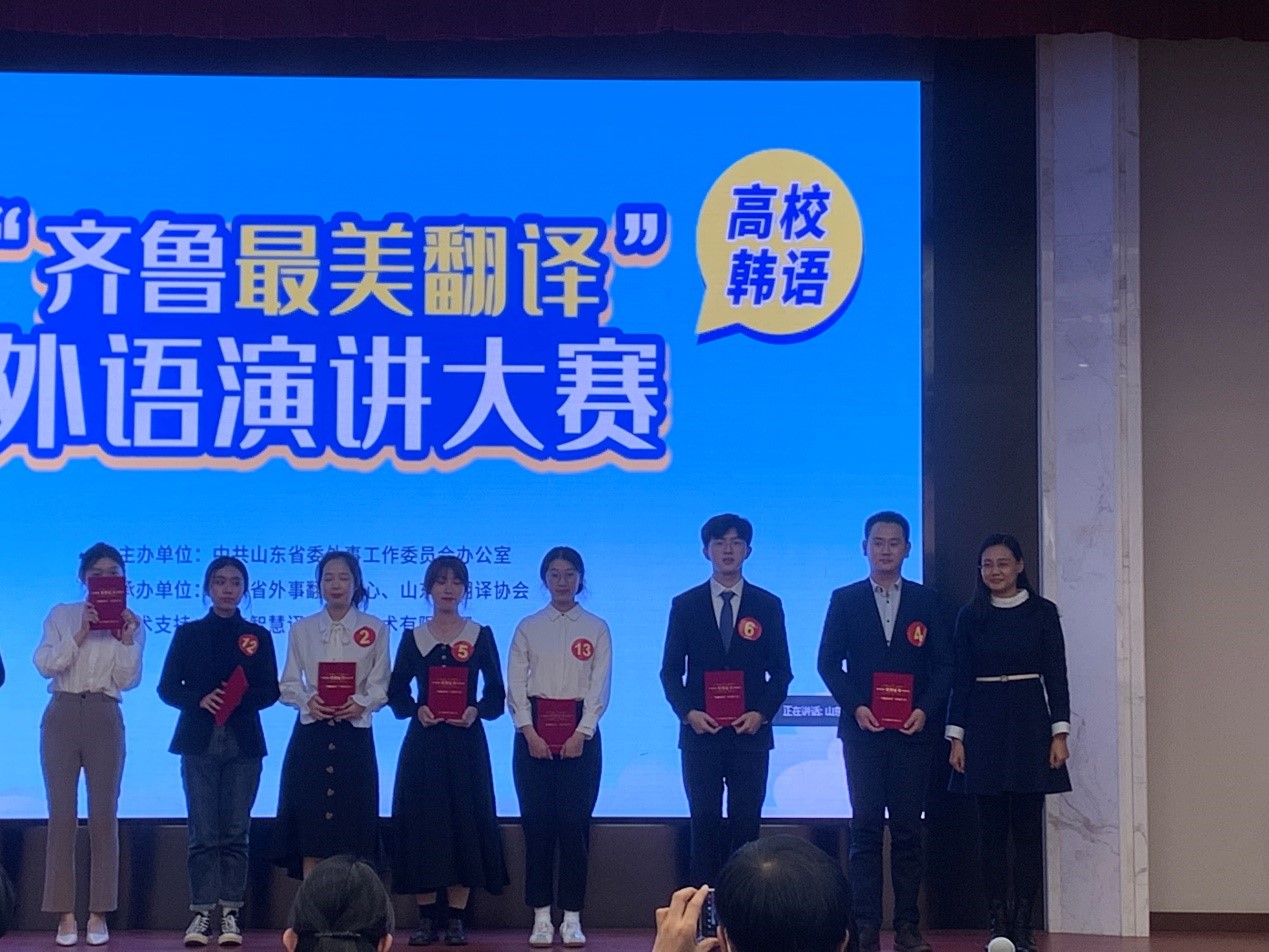 10月30日,由中共山东省委外事工作委员会办公室主办,山东省外事翻译中心、山东省翻译协会承办的“齐鲁最美翻译”外语演讲比赛落下帷幕,威廉希尔中文官方网站18级韩语系学生王佳程经过初赛的激烈角逐,进入决赛,并最终喜获三等奖。