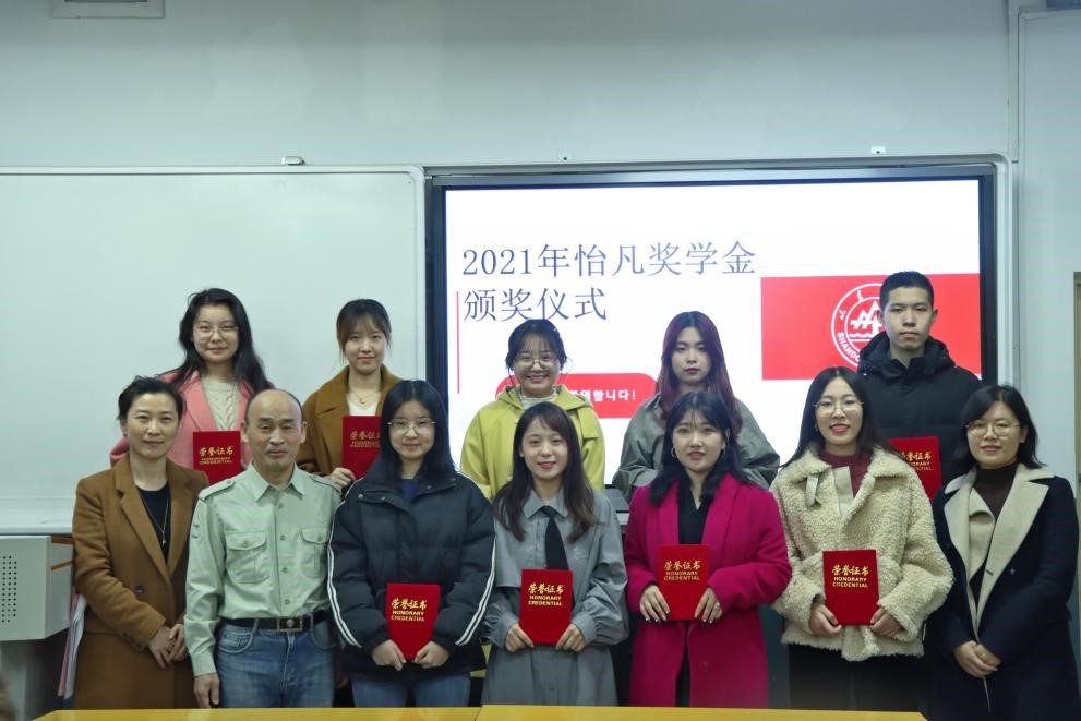 2021年12月9日,威廉希尔中文官方网站韩语系怡凡奖学金颁奖仪式在公教楼举行,李成道、朱明爱、刘荣荣老师作为颁奖嘉宾出席颁奖仪式,韩语系2019级、2020级本科生以及部分研究生代表参与观礼。