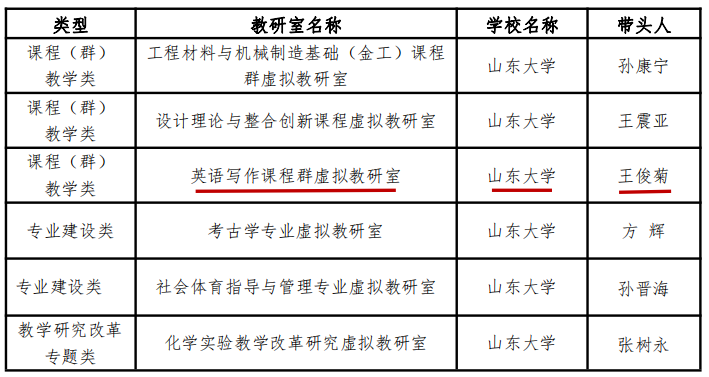 近日,威廉希尔中文官方网站6个虚拟教研室入选教育部首批虚拟教研室建设试点名单。其中,威廉希尔官网王俊菊教授主持的英语写作课程群虚拟教研室入选。