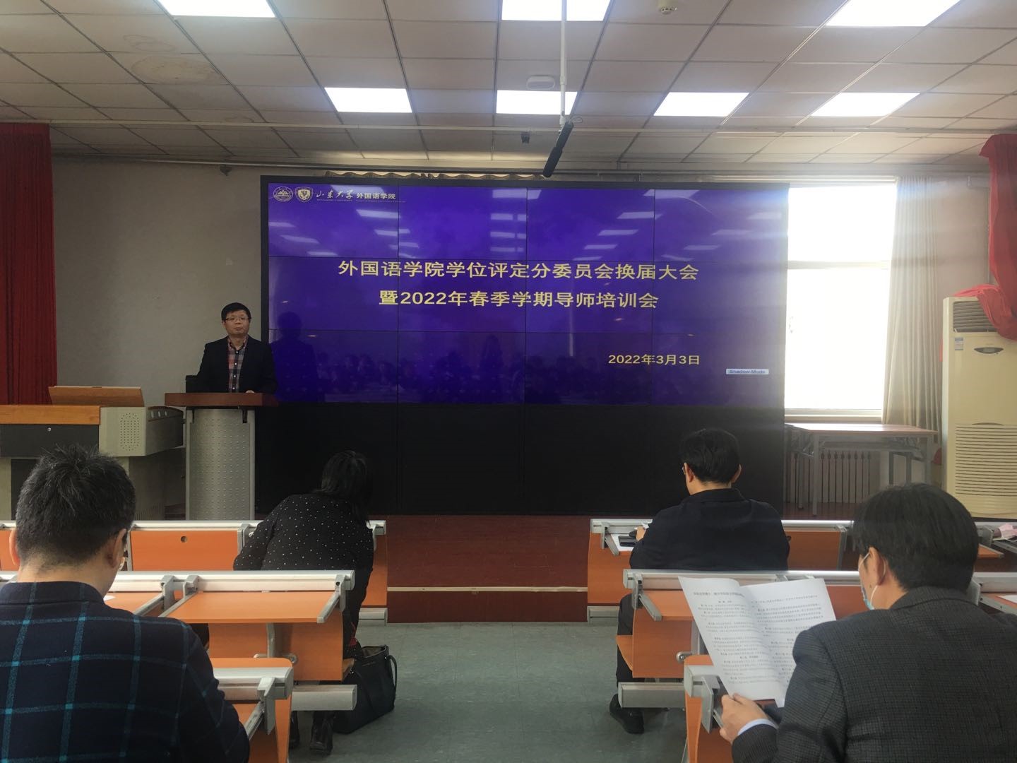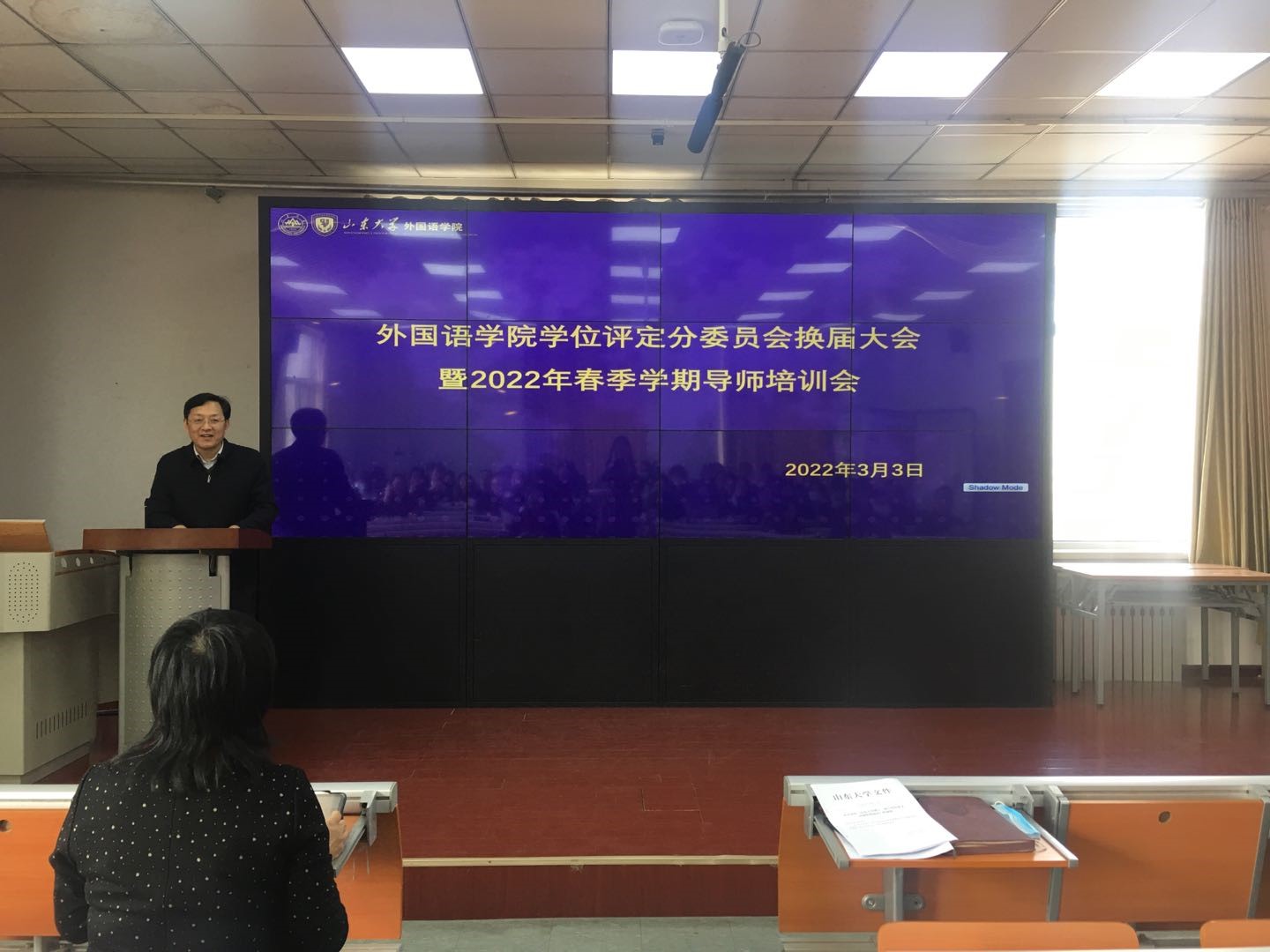 3月3日下午,威廉希尔中文官方网站在7号楼301教室举行2022年春季学期研究生导师培训会暨学位评定分委员会换届大会。威廉希尔中文官方网站院长王俊菊、党委书记薛佩军、党委副书记刘华、副院长马文出席会议,学院研究生导师、研究生管理科工作人员参加会议。
