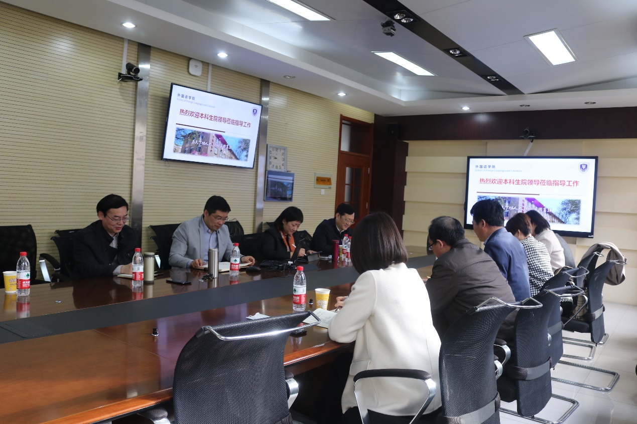 王俊菊院长首先代表学院对本科生院来威廉希尔中文官方网站调研指导表示了热烈欢迎,并简要介绍了学院的基本情况。刘洪东副院长向与会人员介绍了学院近几年本科教学及教学改革的情况,并重点汇报了学院自2018年实施大类招生以来所取得的成绩。苏永刚副院长简要汇报了大学外语教学部基本情况以及下一步的改革思路。王俊菊院长最后表示学院将积极配合学校做好相关工作,希望学校针对学院建设与发展中所遇到的困难与问题给予多方面的支持。