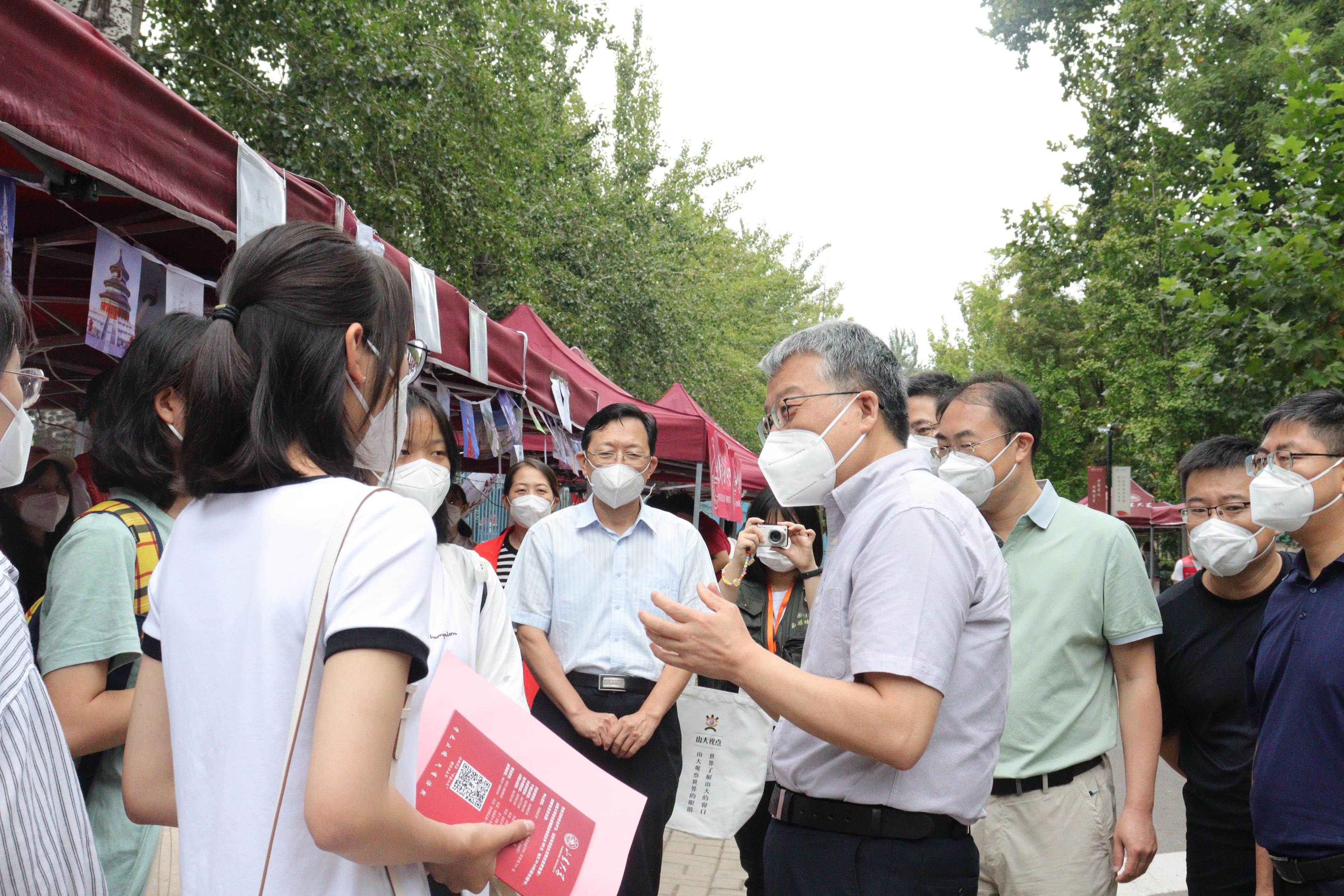 新生报到过程中,学校高度重视新生报到体验和防疫措施落实工作,校领导郭新立、曲明军来到威廉希尔中文官方网站报到现场,与新生亲切交流,询问新生的相关情况和需求,向报到新生赠送学校准备的大礼包,并与威廉希尔中文官方网站本科新生合影留念。