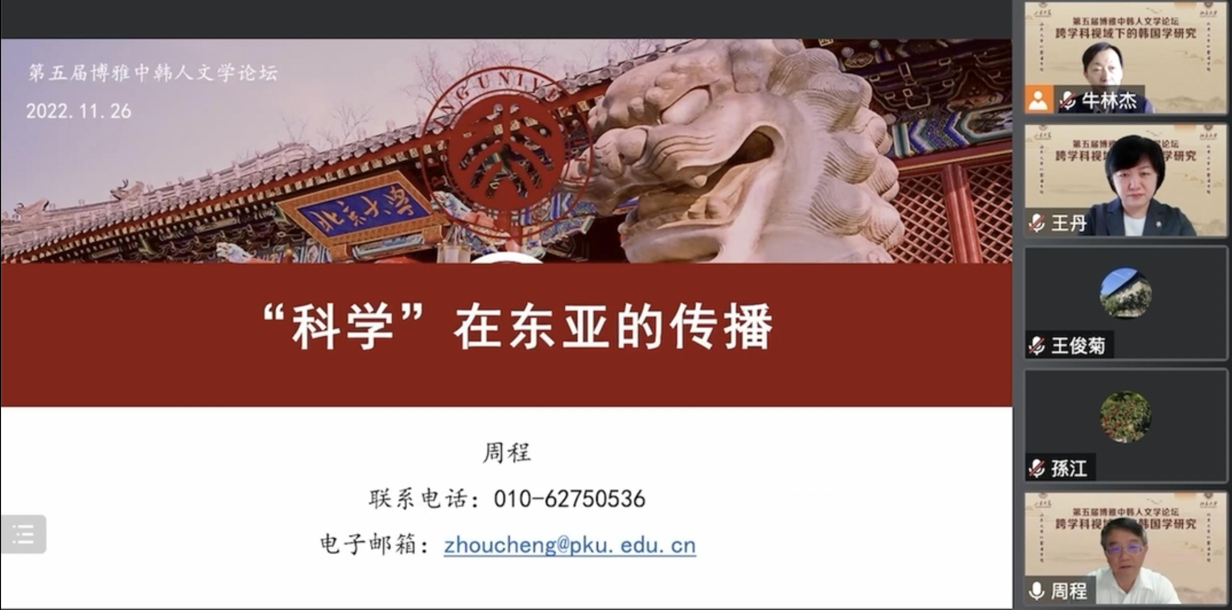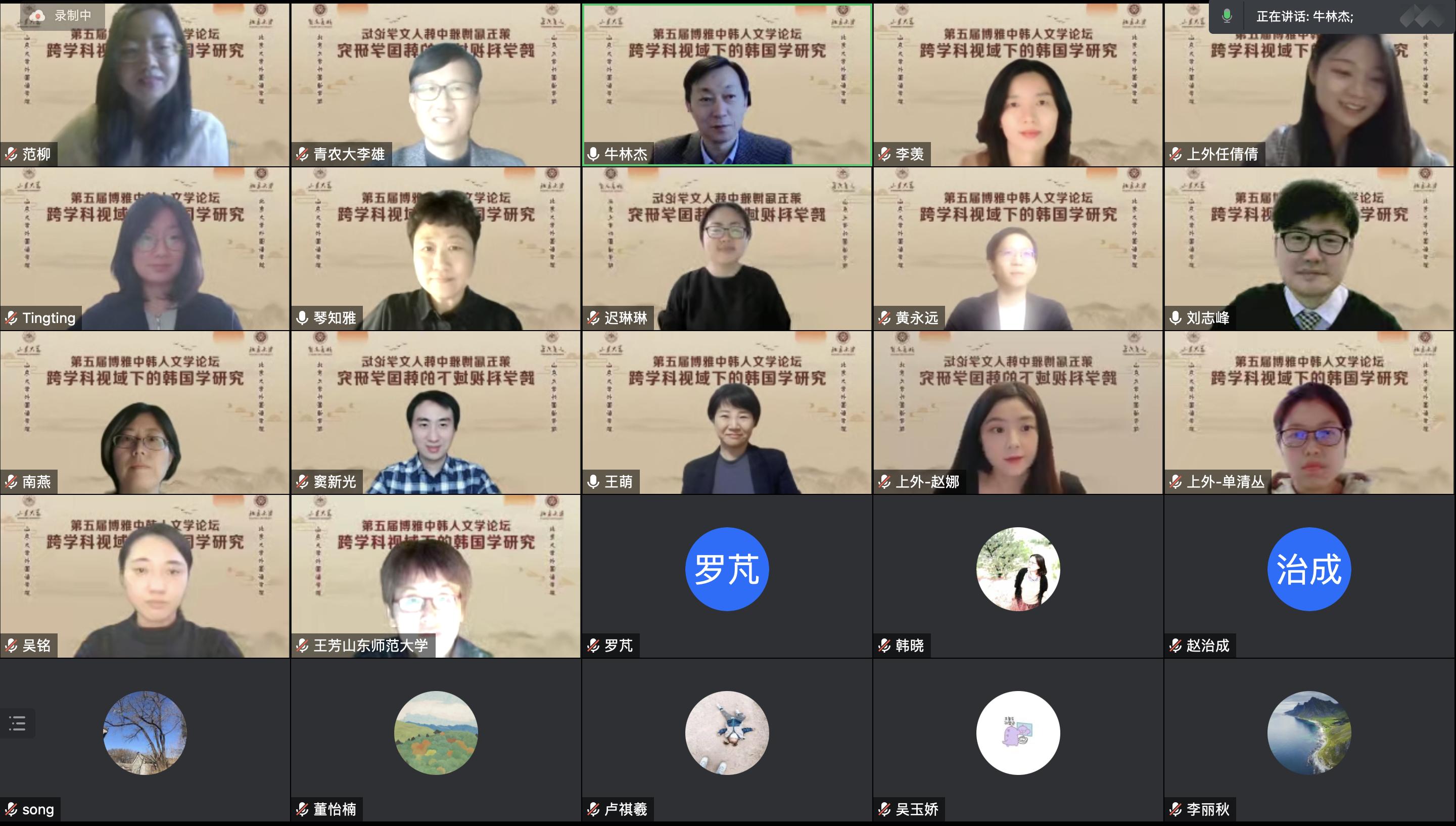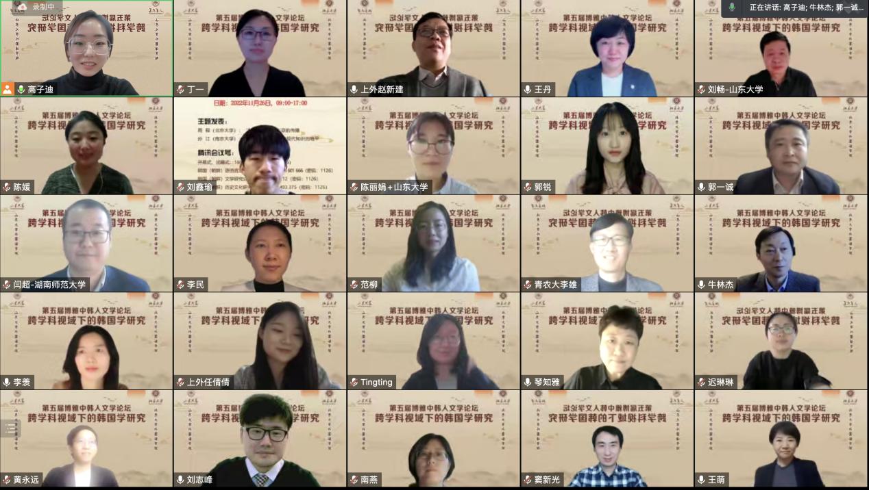 11月26日,由威廉希尔中文官方网站韩国语系、威廉希尔中文官方网站中日韩合作研究中心、北京大学威廉希尔中文官方网站朝鲜(韩国)语言文化系、北京大学朝鲜半岛研究中心共同主办的“第五届博雅中韩人文学论坛”于线上举行。本次论坛以“跨学科视域下的韩国学研究”为主题,来自北京大学、威廉希尔中文官方网站、南京大学、复旦大学、中山大学、北京外国语大学、上海外国语大学等十六所高校和研究机构的五十余名专家、学者和博士研究生参加了会议。