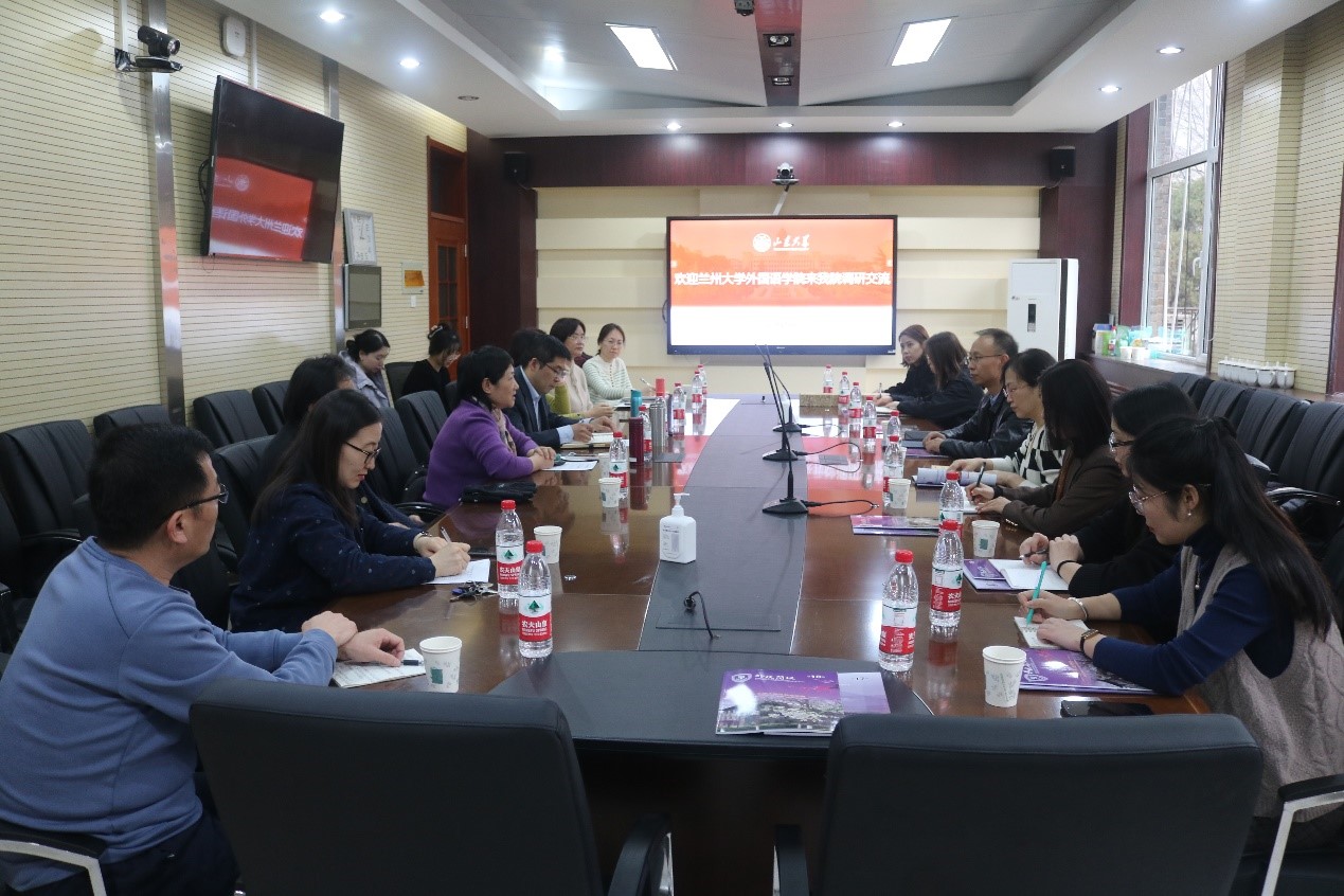 2月9日下午,兰州大学威廉希尔中文官方网站副院长陈建林一行九人来威廉希尔官网调研,院长王俊菊、副院长刘洪东、英语、日语、俄语、法语、德语系系主任等出席了座谈会。