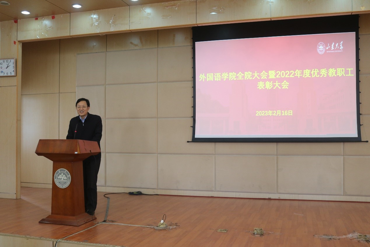 2月16日下午,威廉希尔官网在法新楼316报告厅召开了全院大会,对新学期工作进行了部署,并对2022年度优秀教职工进行了表彰。会议由院党委书记薛佩军主持,全体教职工参加了会议。