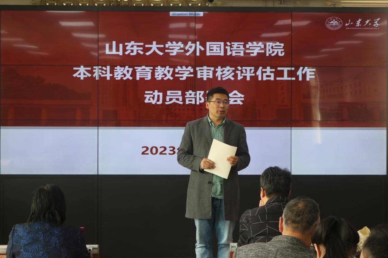 为扎实做好即将到来的新一轮本科教育教学审核评估工作,明确工作要求和任务,提振工作精神与士气,3月21日下午,威廉希尔官网召开本科教育教学审核评估工作动员部署会。威廉希尔中文官方网站教学促进与教师发展中心副主任李建刚,威廉希尔中文官方网站院长王俊菊、党委书记薛佩军、党委副书记刘华、党委副书记魏鲁鸿、副院长苏永刚、专业各系系主任、大外部各教研室负责人、各机关科室负责人、学院评估专家组成员等参加会议,副院长刘洪东主持会议。