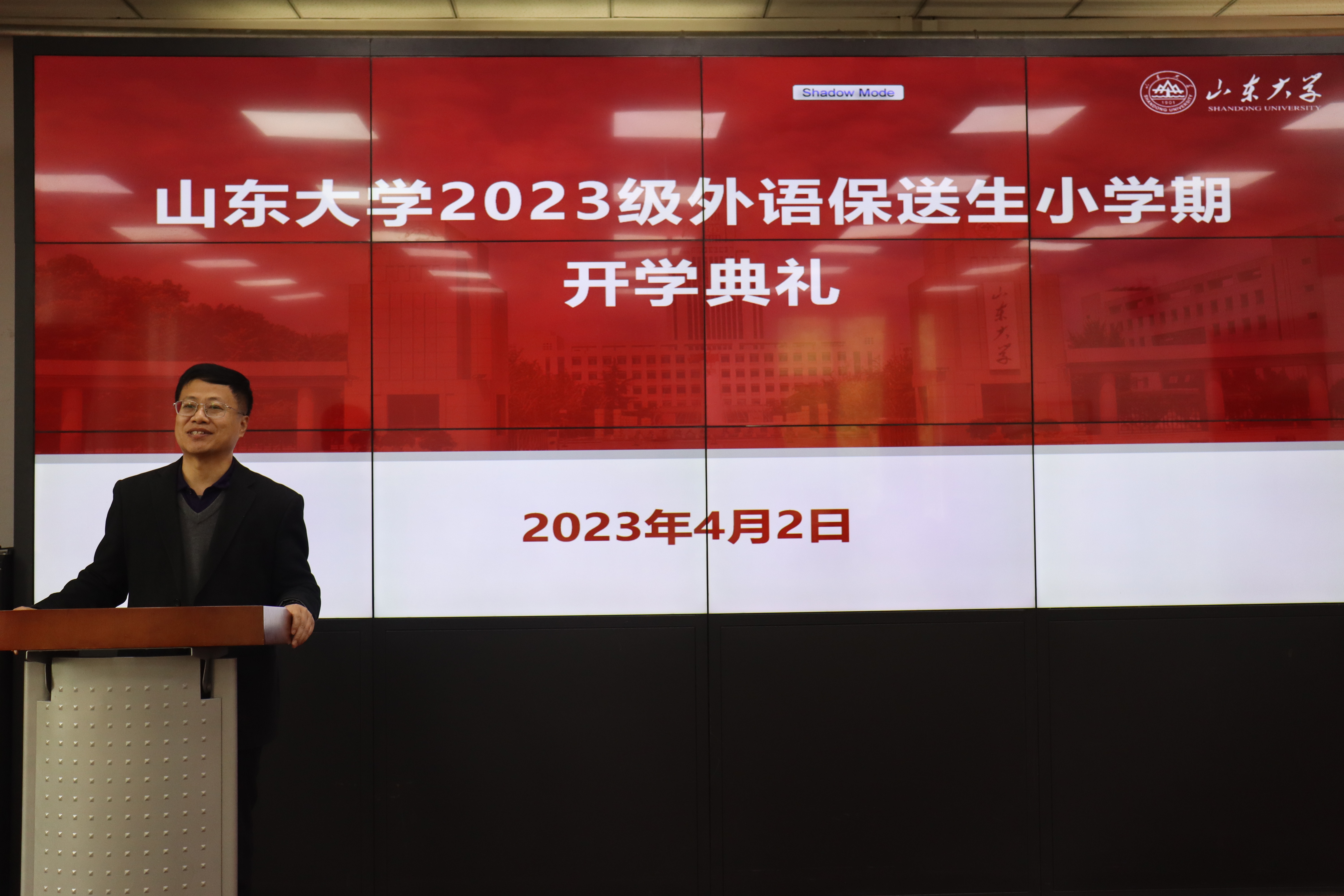 4月3日上午,威廉希尔中文官方网站举办了威廉希尔中文官方网站2023级外语类保送生小学期开学典礼。威廉希尔中文官方网站本科招生办公室副主任徐延宝,威廉希尔中文官方网站院长王俊菊,党委书记薛佩军,副院长刘洪东,党委副书记魏鲁鸿出席了此次典礼。25名2023级外语类保送生参加典礼,威廉希尔中文官方网站辅导员张心慧主持典礼。