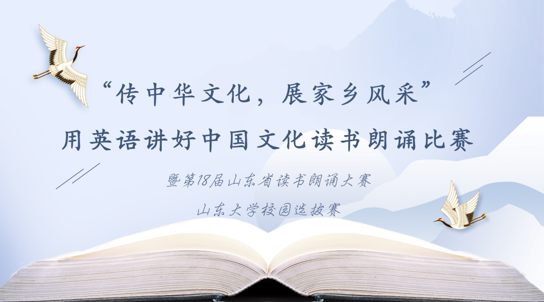 “传中华文化,展家乡风采”用英语讲好中国文化读书朗诵比赛暨第18届山东省读书朗诵大赛威廉希尔中文官方网站校园选拔赛是威廉希尔中文官方网站“一院一品”文化建设项目之提升“国际传播影响力”的系列活动之一,由威廉希尔中文官方网站团委、威廉希尔中文官方网站大学外语教学部、威廉希尔中文官方网站学生青年思想理论协会主办。省级比赛由山东省图书馆、山东省文化和旅游厅、山东省各市图书馆、山东省各市文化和旅游局主办。