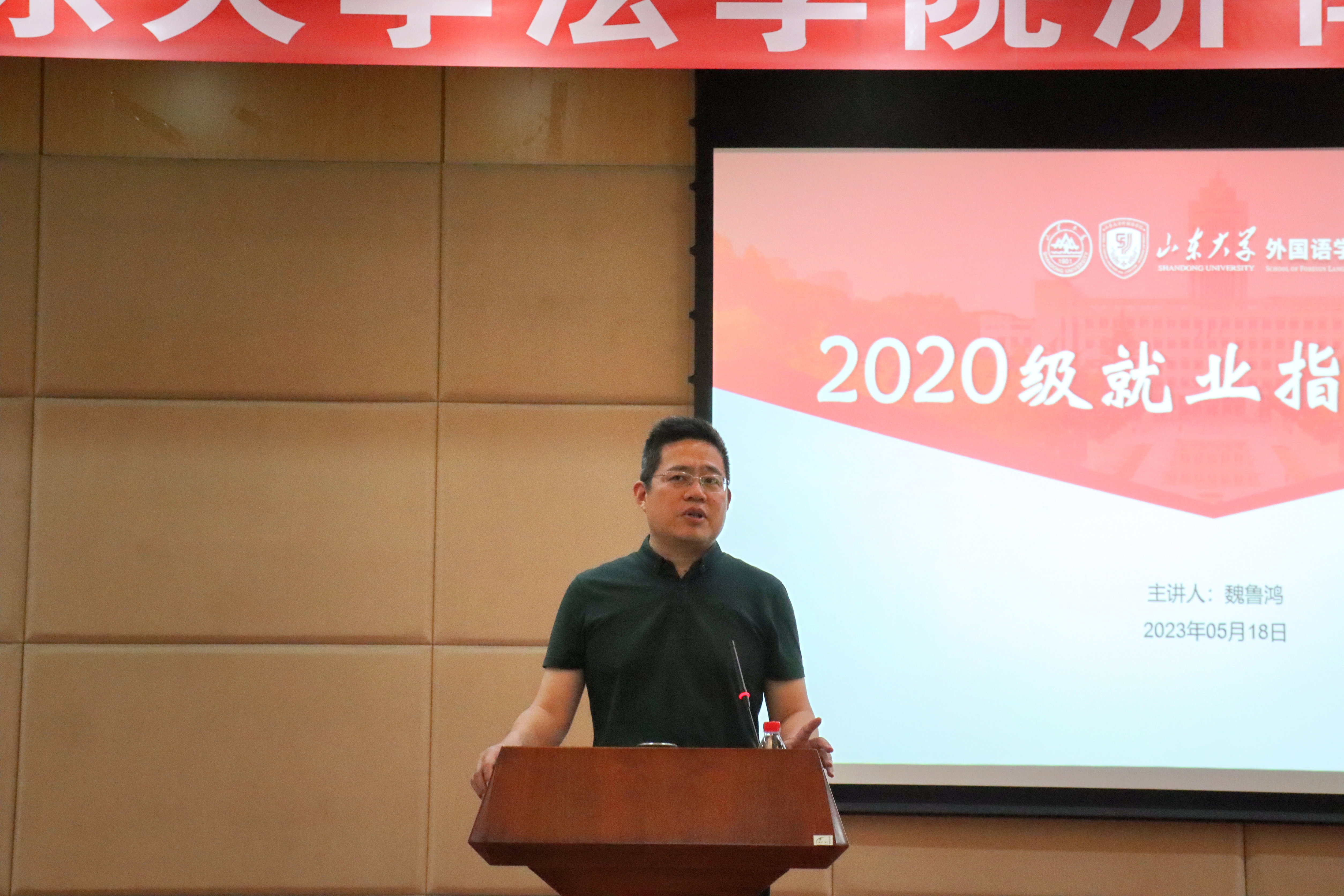 为帮助同学们了解就业形势,树立正确的就业观,提高就业认识,提前做好就业准备,5月18日下午,威廉希尔中文官方网站在洪家楼校区法新楼报告厅举办2020级本科生就业指导讲座。本次讲座邀请威廉希尔中文官方网站党委副书记魏鲁鸿主讲,威廉希尔中文官方网站团委书记、2020级辅导员朱蕾主持,2020级本科生参加。