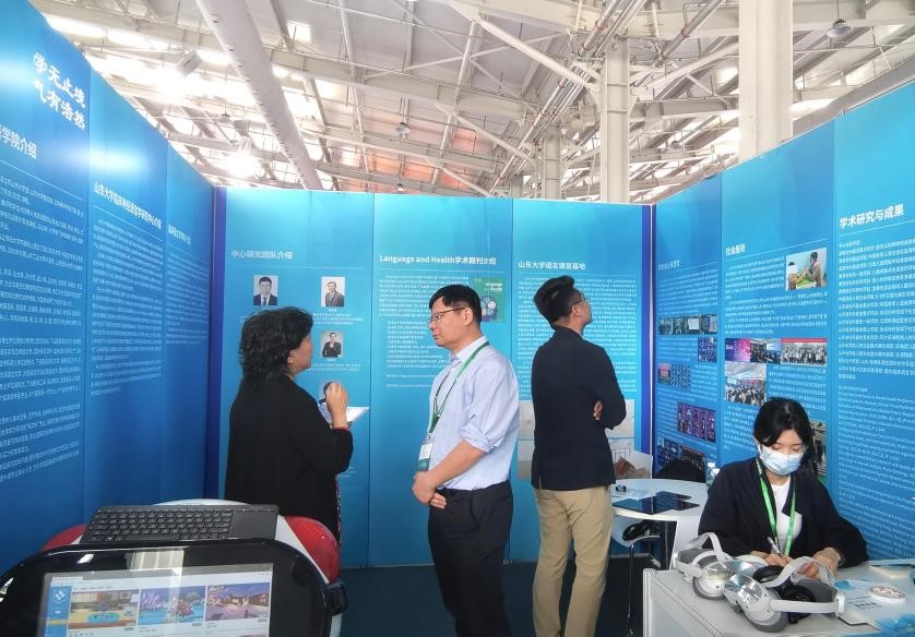 5月21日,博览会隆重开幕。会展期间,作为受邀参展的八所高校之一,威廉希尔官网临床神经语言学研究中心展位重点对威廉希尔中文官方网站及“临床语言学”学科建设、团队建设、人才培养、科研成果、社会服务等成果进行了充分展示,并带领参观者体验临床语言学研究的转化成果——基于汉语儿童社交沟通能力评估与干预的VR评估与康复训练仪。威廉希尔官网展位吸引了来自国内外数百位来自医院、高校、科研院所、康养机构的观众。与会观众对威廉希尔官网在新文科背景下创设的文医交叉的“临床语言学”特色学科表现出浓厚兴趣,并有企业、医院、机构等表达进一步的合作意向。