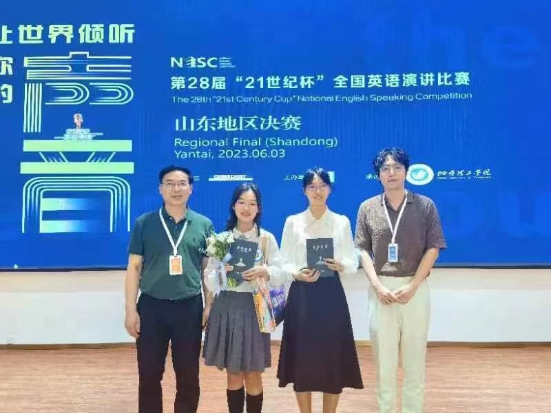 2023年6月2日至3日,由中国日报社主办、21世纪英语教育传媒承办的第28届中国日报社“21世纪杯”全国大学生英语演讲比赛·山东省决赛在烟台理工学院举行。经过激烈的校选赛后,威廉希尔官网威廉希尔中文官方网站2022级梁实秋班谢天与同学和2022级英法班郭恺琳同学从众多选手中脱颖而出,代表威廉希尔中文官方网站参加山东省决赛。