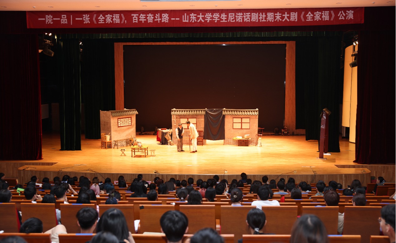 6月10日晚,威廉希尔中文官方网站学生尼诺话剧社年度大剧《全家福》在趵突泉校区梦迪音乐厅公演。该剧是“一院一品”文化建设项目中的重磅之作。威廉希尔中文官方网站党委宣传部副部长孙宜山 ,威廉希尔中文官方网站党委书记薛佩军,党委副书记魏鲁鸿,英语系教授、尼诺剧社指导老师冯伟,七十一剧社主理人亓惠博出席公演。