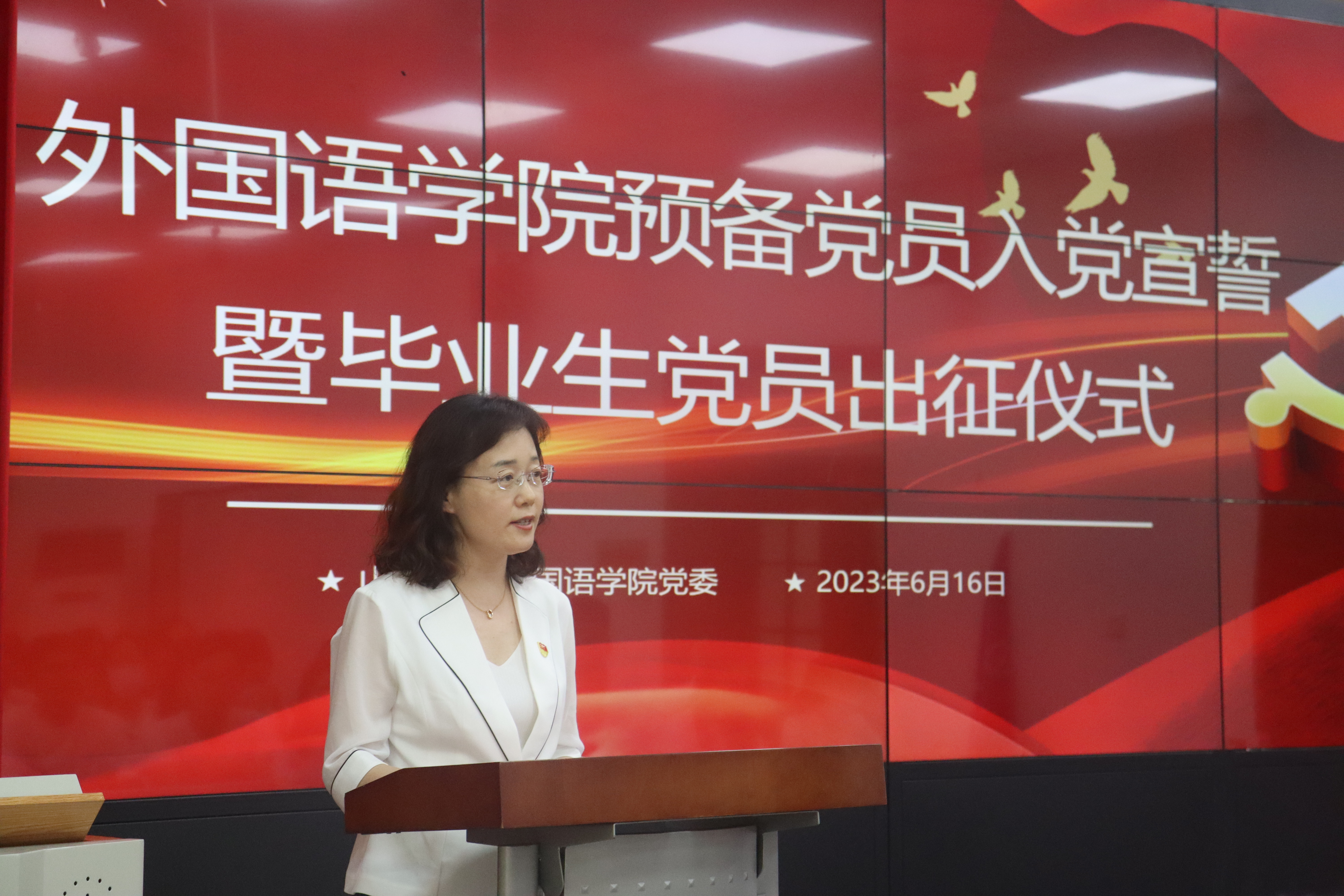 薛佩军指出,“入党宣誓是加入党组织的起点,是我们党员身份的开始,是我们接受教育、不断进步的开始,也是我们履行党员义务,发挥党员作用的开始。”加入党组织是共产党员万里长征的第一步,不仅要在组织上入党,更要在思想上入党。习近平总书记曾提出,青年是整个社会力量中最积极、最有生气的力量,国家的希望在青年,民族的未来在青年,因此各位党员同志应当不负时代、不负韶华,自觉将个人理想融入社会整体发展与国家民族大业之中。最后,薛佩军对在座党员提出了四点要求和希望。一、讲政治、有信念,铁心跟党走,矢志而不渝;二、讲道德、有担当,勇担党员责任,履行党员义务;三、讲奉献、有作为,面向实践,实践出真知;四、讲规矩、守纪律,严守纪律是共产党员的鲜明品格和为人准则。