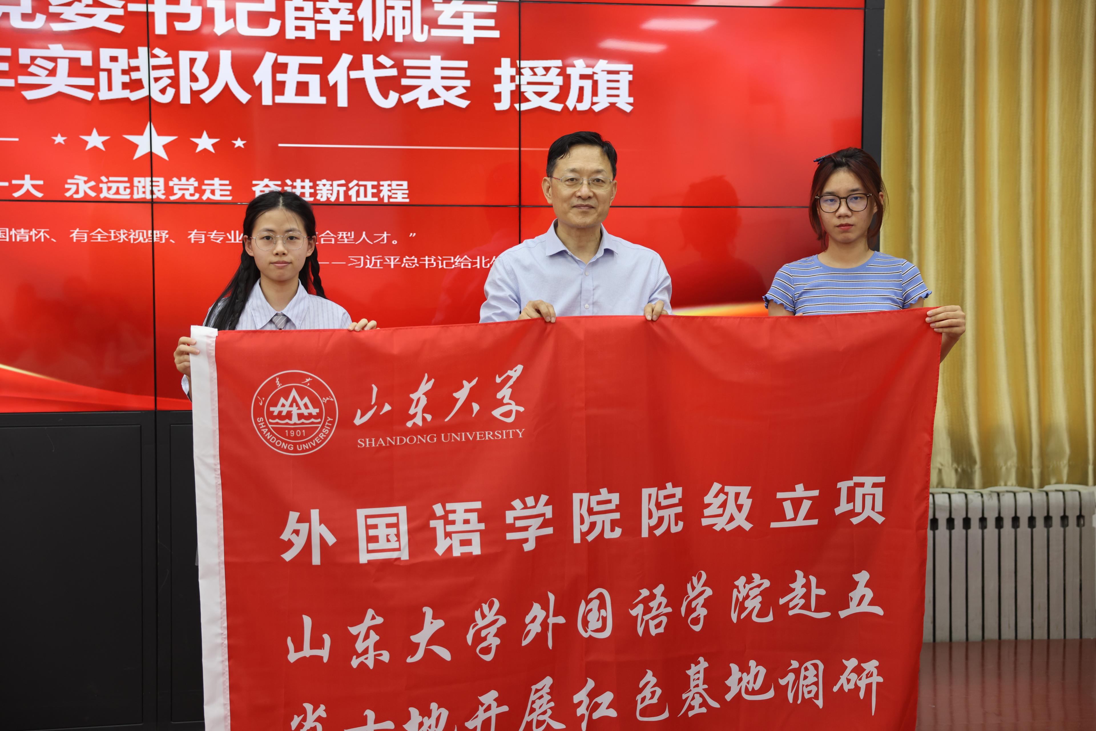 最后,薛佩军为6支社会实践代表团队一一授旗,鼓励同学们把握当下,在社会实践中成长为有理想、敢担当、能吃苦、肯奋斗的新时代好青年。