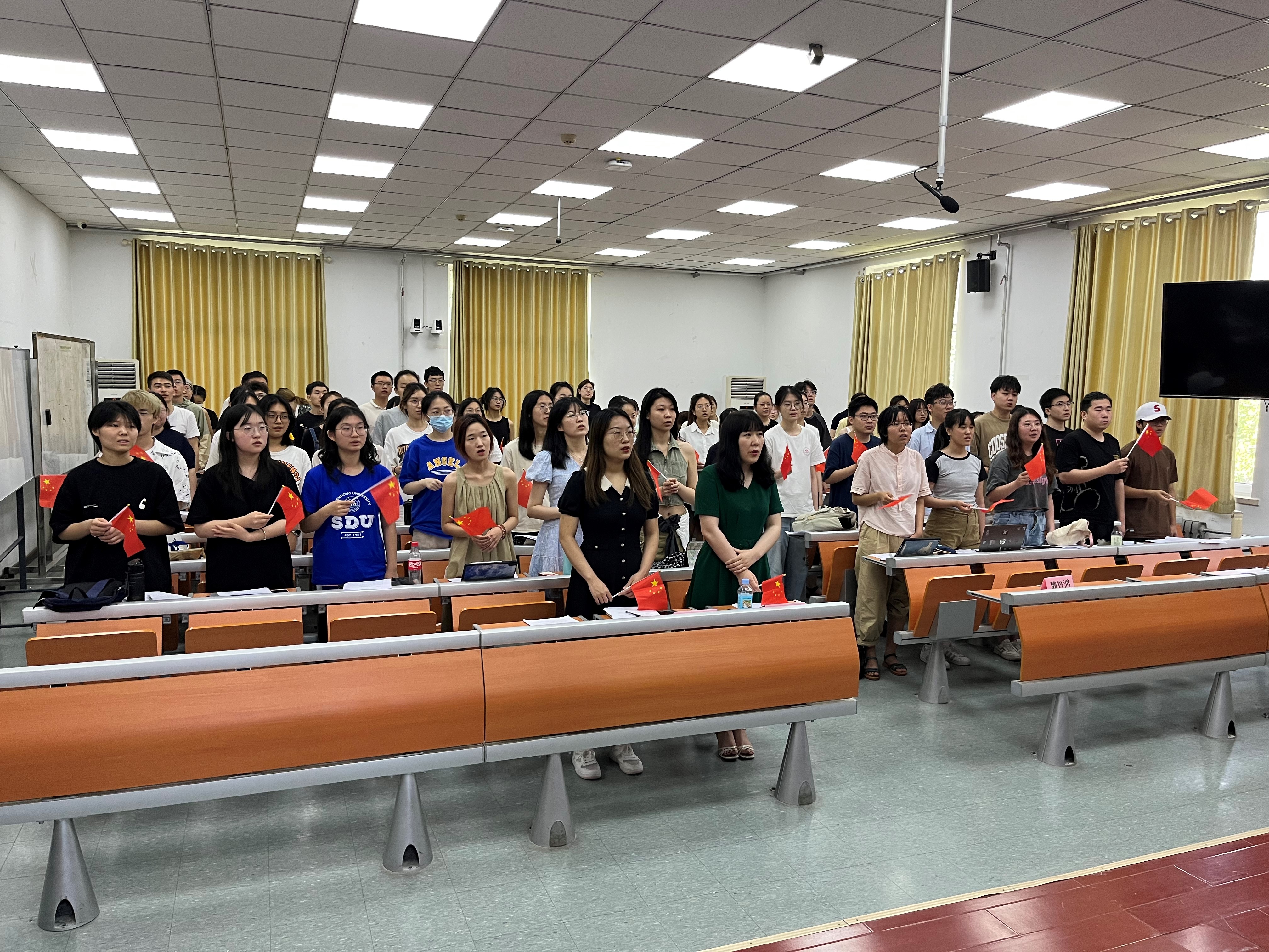 最后,全体参会成员起立合唱了《我和我的祖国》。