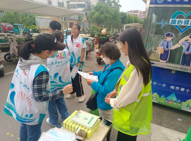“凝聚力自民心中产生,与民心聚合在一起。这是中华文明生命力、活力之所在。”利民服务只有温暖民心,才能使社区产生向上的凝聚力,而凝聚力恰恰是构建富强民主文明和谐美丽社会的重要条件。2022级法语国际班团支部青年志愿者联合甸柳新村街道吉祥苑社区与街道垃圾分类宣教基地,在吉祥苑社区开展了“拥抱绿色”垃圾分类宣传活动。青年学生向社区居民发放垃圾分类宣传手册,强调了垃圾分类投放的重要性,讲解了垃圾分类基本知识,介绍了投放有害垃圾的正确方式,现场指导居民如何区分干湿垃圾、可循环和不可循环废弃物。志愿者们用行动积极打造“绿色社区”,为居民提供了和谐舒心的社区环境,用热情温暖了基层民心。