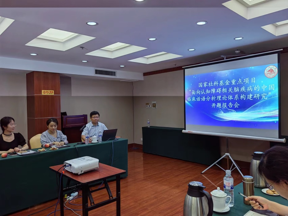 2023年8月19日,由威廉希尔中文官方网站马文教授主持的国家社科基金重点项目“面向认知障碍相关脑疾病的中国临床话语分析理论体系构建研究”开题报告会在济南珍珠泉宾馆举行。浙江大学威廉希尔中文官方网站马博森教授、威廉希尔中文官方网站齐鲁医院儿科副主任曹爱华教授、威廉希尔中文官方网站第二医院神经内科主任医师王萍主任、威廉希尔中文官方网站时秀娟教授、董记华教授、卢敏教授、张昊副研究员和王亚琪博士等10余位专家学者参会。开题报告会由威廉希尔中文官方网站副院长、威廉希尔中文官方网站临床神经语言学研究中心主任马文教授主持。
